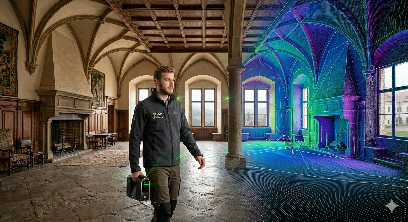 V ATIKA Domus věříme, že kvalita projektu začíná u dokonalého zaměření. Abychom vám ušetřili čas a zajistili milimetrovou přesnost, investovali jsme do nejmodernější technologie na trhu. Nově k našim klientům vyjíždíme s mobilním laserovým skenerem Leica BLK2GO.